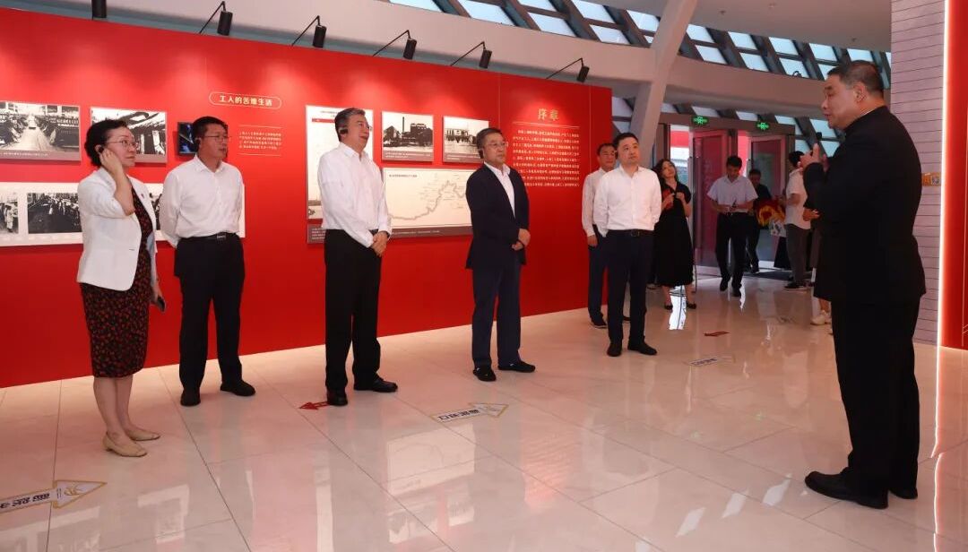 “百年荣光 致敬先锋”主题展围绕中国共产党领导的上海工人运动史,依托档案文献与历史影像,回溯五卅运动等重大事件,引导广大职工从红色文化中汲取精神力量。与会领导一行步入展厅9688策略宝,认真听取讲解,了解普陀沪西地区工运史与工人先锋的英勇事迹。